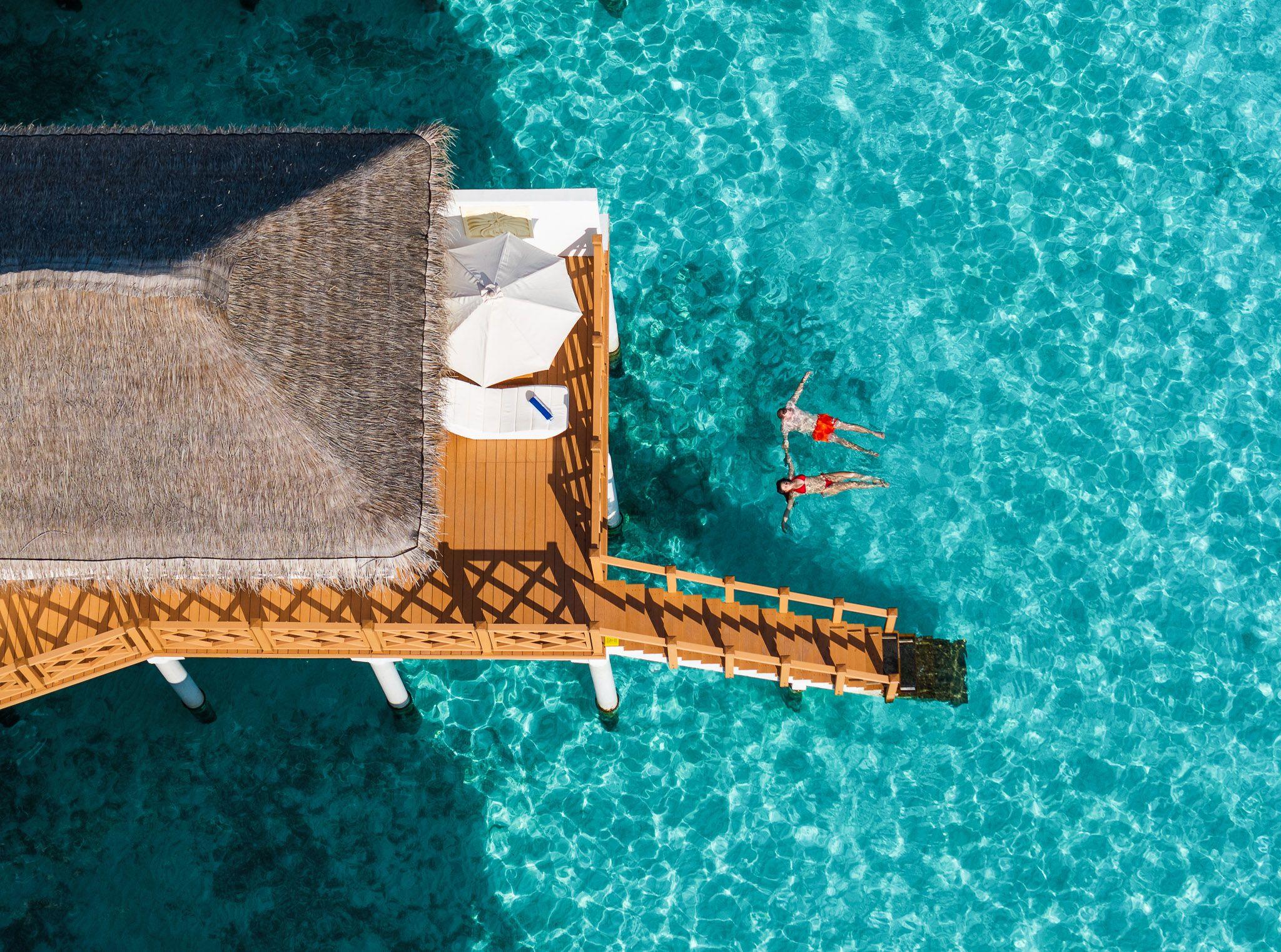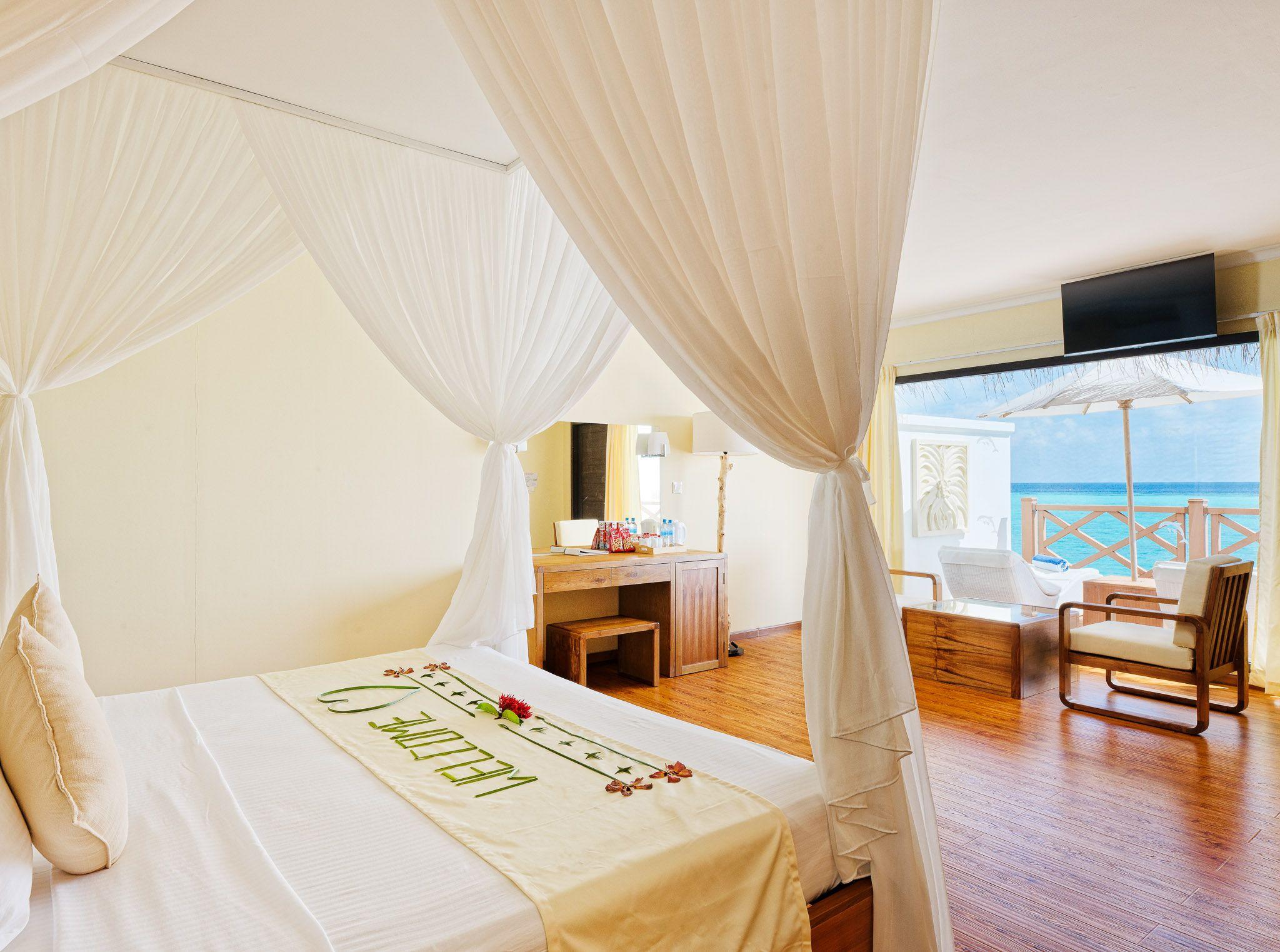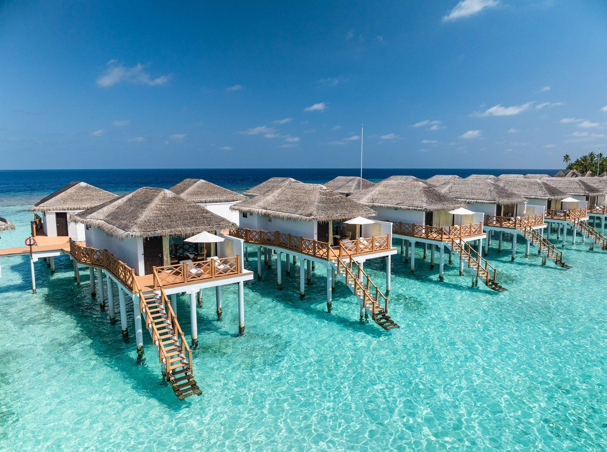 Angaga Island Resort & Spa offers guests an authentic Maldivian experience with 50 detached beach bungalows and 44 water villas, each featuring traditional thatched roofs and modern amenities. The resort's award-winning dive centre, operated by SUB AQUA, provides access to over 30 dive sites, including opportunities to spot whale sharks year-round. Guests can indulge in various water sports, relax at the on-site spa, and enjoy dining options that include a buffet restaurant serving international and Maldivian cuisine. The island's compact size and natural beauty make it an ideal destination for those seeking peace and tranquillity.