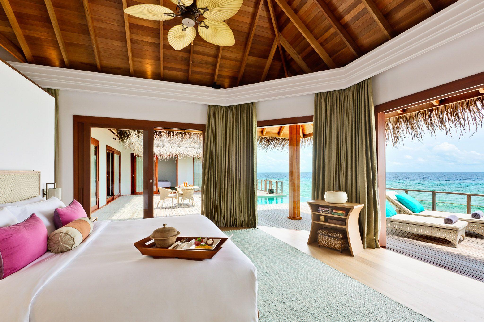 Dusit Thani Maldives seamlessly blends Thai hospitality with Maldivian island culture on Mudhdhoo Island in Baa Atoll, the Maldives' first UNESCO World Biosphere Reserve. The resort features 94 villas and residences, each combining lavish Thai furnishings with Maldivian design elements. Guests can explore the vibrant house reef, relax in one of the Maldives’ largest infinity pools, or retreat to the award-winning Devarana Spa, which offers elevated treatment rooms among the coconut trees. Culinary experiences include international cuisine and the signature Thai restaurant, Benjarong.