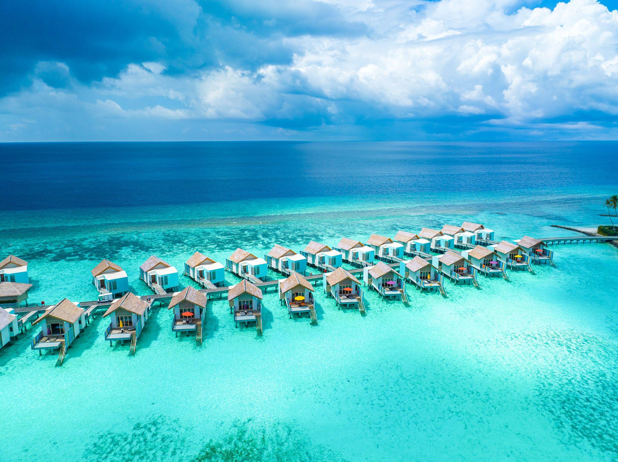 Hard Rock Hotel Maldives, located in Emboodhoo Lagoon, combines rock ‘n’ roll energy with tropical luxury. The resort features 178 rooms, including family-friendly suites and overwater villas, each with stunning ocean views. Guests can enjoy a large oceanfront pool, live music events, and exclusive dining at Hard Rock Café Maldives. Activities include snorkeling, aerial art classes, and access to The Marina @ CROSSROADS for entertainment and shopping. A 15-minute speedboat ride from Malé ensures easy access.