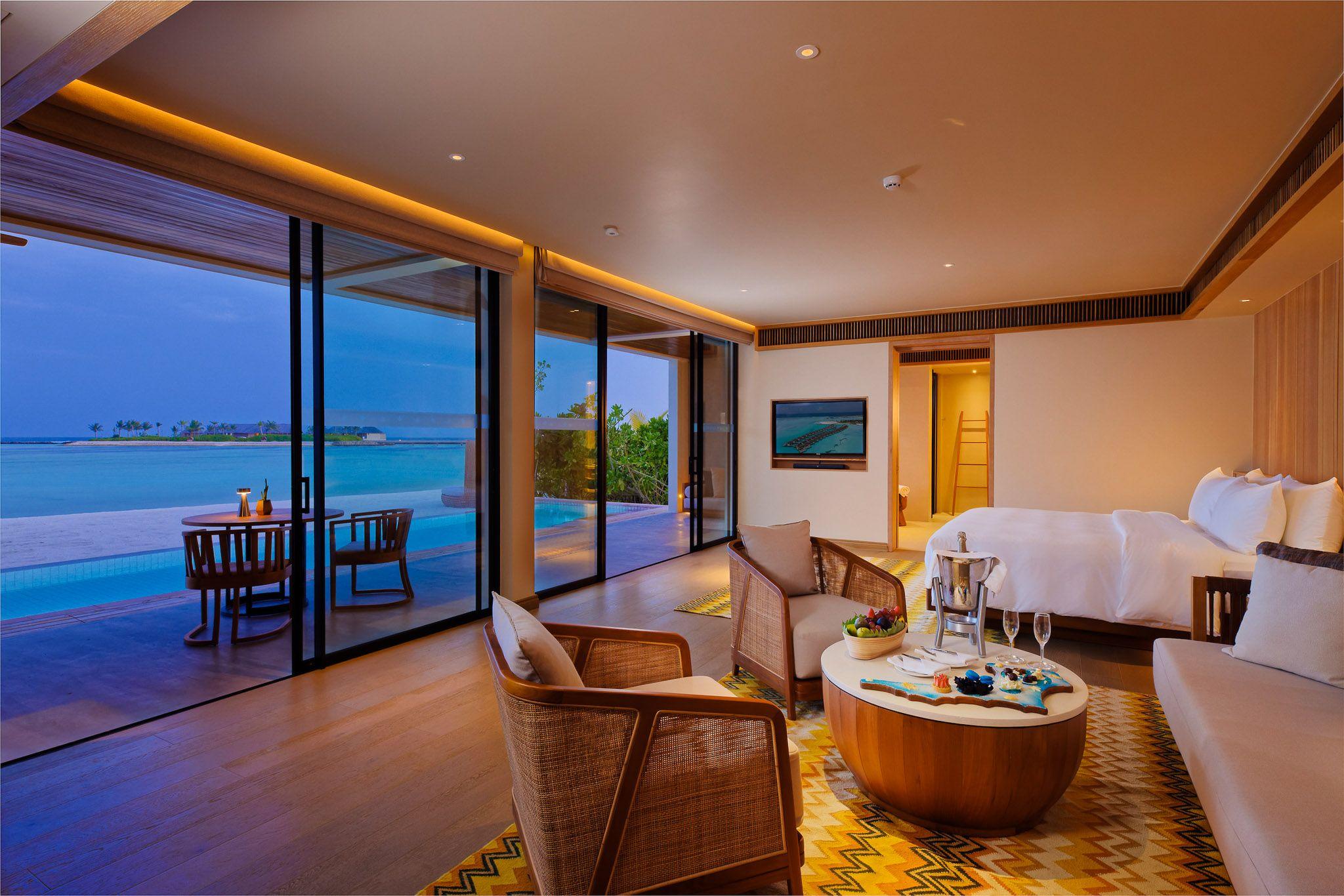 Kuda Villingili Resort Maldives offers an idyllic escape where time and space are redefined. The resort's design blends Asian eclectic style with traditional Maldivian arts, creating a harmonious ambiance. Accommodations range from beach villas nestled amidst lush greenery to overwater villas with panoramic ocean views, all featuring private pools for ultimate privacy and relaxation. Culinary experiences span seven restaurants, offering cuisines from Japanese-Peruvian fusion to Mediterranean delights.