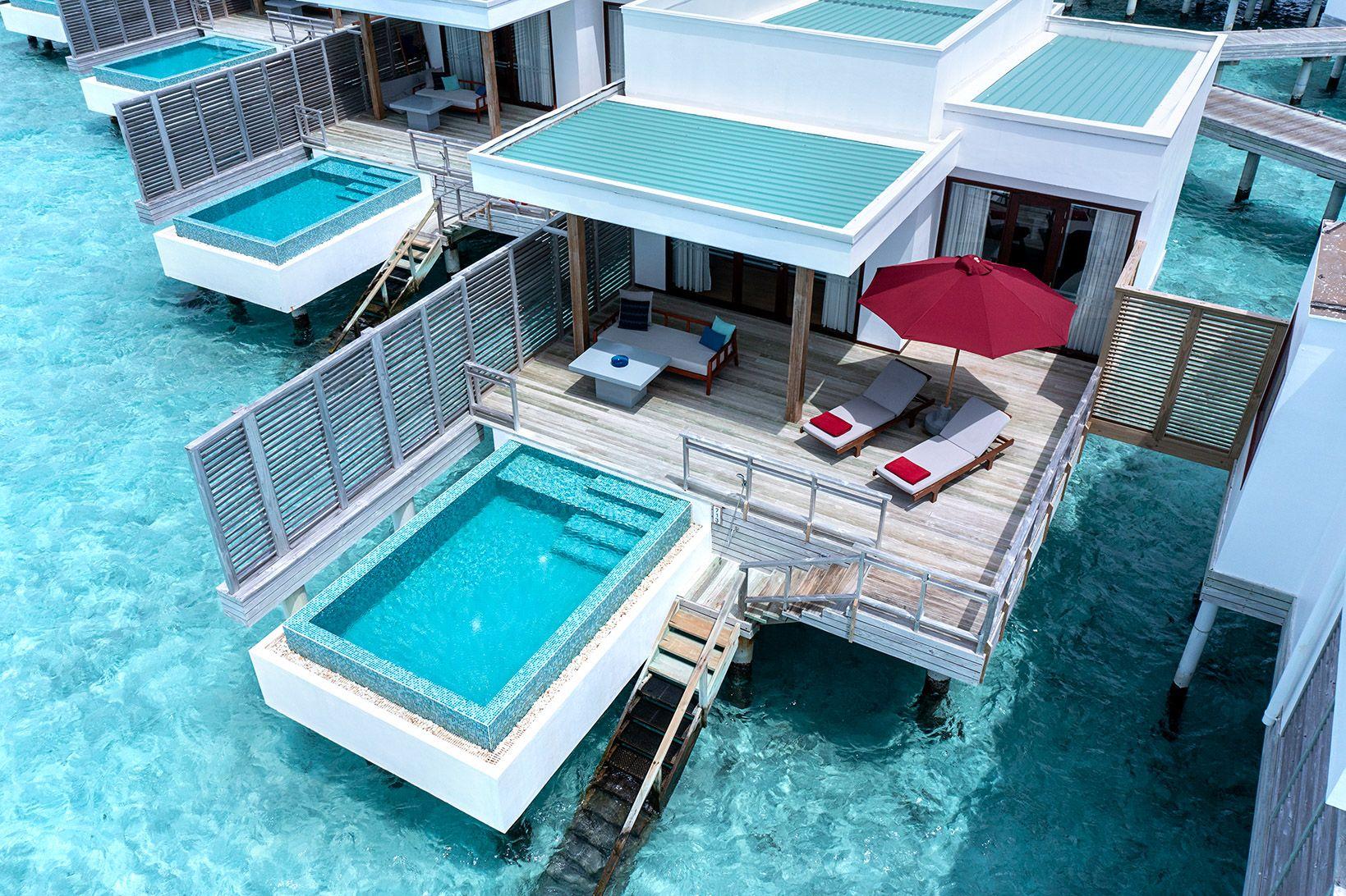 TRANSFER & LOCATION: The island is accessible via a 45-minute seaplane flight or a 1 hour 15 minute domestic transfer. The resort features 182 villas, ranging from Beach Bungalows to the expansive Dhigali Suite, situated on a coral-ringed island with a pristine house reef.