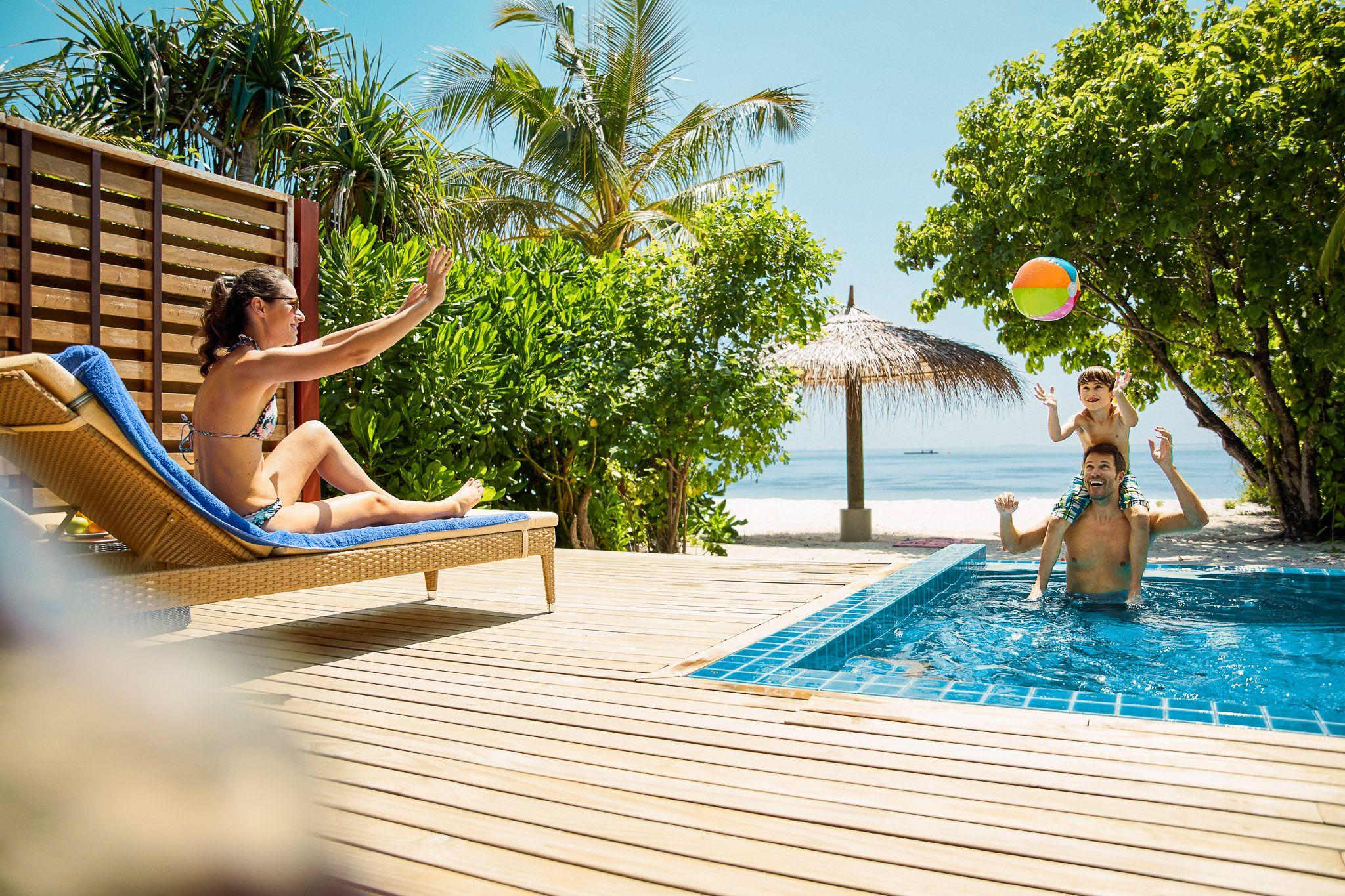 Nestled in the tranquil Noonu Atoll, ROBINSON NOONU offers a harmonious blend of luxury and natural beauty on the secluded island of Orivaru. The resort comprises 150 accommodations, including beach bungalows with private pools and overwater villas with direct lagoon access, each providing modern comforts such as air conditioning, flat-screen TVs, and outdoor rain showers. Culinary experiences abound with multiple restaurants and bars, including a teppanyaki restaurant raised on stilts, serving international and local cuisines. For recreation, guests can indulge in various water sports, explore the vibrant house reef, or rejuvenate at the on-site spa. The resort's all-inclusive "made by ROBINSON" concept and easy accessibility from Malé make it a family-friendly destination, ensuring a memorable stay for all visitors.
